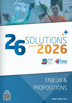 Le 12 février, la Fédération des Entreprises de Propreté, d’Hygiène et Services Associés (FEP) a présenté aux parlementaires et aux médias l’actualisation de son « Livre Bleu », qui comporte « 26 solutions » afin de répondre aux défis socio-économiques conjoncturels et structurels. Ces propositions s’articulent autour de 2 axes :
